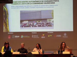 Uno de los hitos de la agenda fue la participación de la delegación en el Primer Encuentro de Ciudades por el Comercio Justo, celebrado en el Colegio Mayor Rector Peset de Valencia.